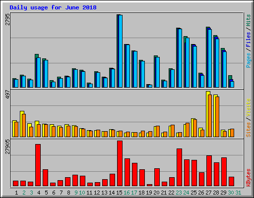 | Day | Hits | Files | Pages | Visits | Sites | KBytes | ||||||